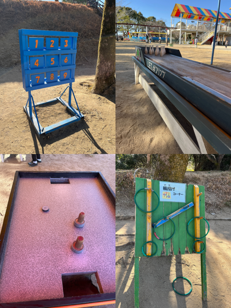 昔懐かしいおもちゃがたくさん並んでおり、どれから遊ぼうか迷います。