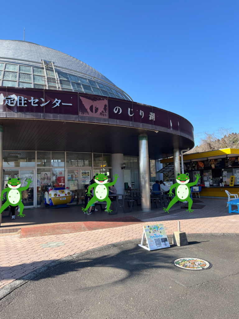 のじりこぴあの園内や入口には、多くのカエルモニュメントやキャラクターが置かれています。野尻町や小林市周辺では、昔から 「都会へ出た人たちが、故郷の野尻に“カエル(帰る)”ことを願う」 という言葉遊びや想いが大切にされてきました。